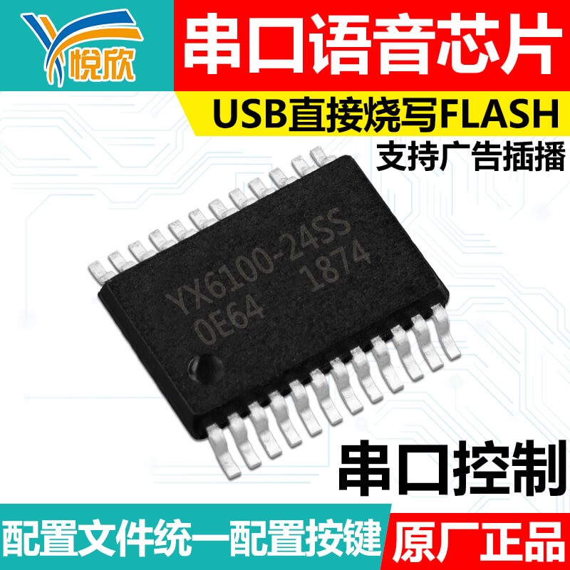 YX6100-24SSÊÇÒ»¸öÌṩ´®¿ÚµÄÓïÒôоƬ£¬ÓÅÁ¼µÄ¼¯³ÉÁËMP3¡¢WAVµÄÓ²½âÂ롣ͬʱÈí¼þÖ§³Ö¹¤Òµ¼¶´ËÍâ´®¿ÚͨѶºÍ̸£¬ÒÔSPIFLASH»òÕßUÅÌ×÷Ϊ´æ´¢½éÖÊ£¬Óû§Äܹ»½Ã½ÝµÄÑ¡ÓÃÆäÖеÄÈκÎÒ»ÖÖÉ豸×÷ΪÓïÒôµÄ´æ´¢½éÖÊ¡£Í¨¹ýµ¥Ò»µÄ´®¿ÚÖ¸Áî¼´¿ÉʵÏÖ²¥·ÅÖ¸¶¨µÄÓïÒô£¬ÒÔ¼°ÈôºÎ²¥·ÅÓïÒôµÈÖ°ÄÜ£¬ÎÞÐè·±ËöµÄµ×²ã²Ù×÷£¬Ê¹Ó÷½±ã£¬²»±ä¿¿µÃסÊÇ´Ë¿î²úÆ·µÄ´óÌØµã¡£